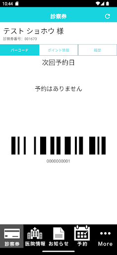 バーコードをかざすだけで受付出来るチェックイン機能、次回ご予約日時表示など、カードレスな診察券としてご活用頂けます。