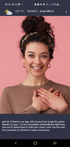 AuraMirror: Transform your device into a smart mirror that not only showcases your reflection but also keeps you informed with personalized daily horoscope readings and accurate local weather updates. Stay in tune with the cosmos and the climate, all in one convenient app.