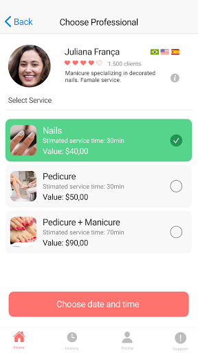 In a few clicks, it’s simple to choose your date, time, address, payment method, professional, and if you want to perform only one or several simultaneous services. Our team will come to your home, hotel, work, or any location you wish and will arrive with all the products and equipment necessary to carry out a complete salon service in the comfort of your home, without crowds, waiting time, or wasting time in traffic.