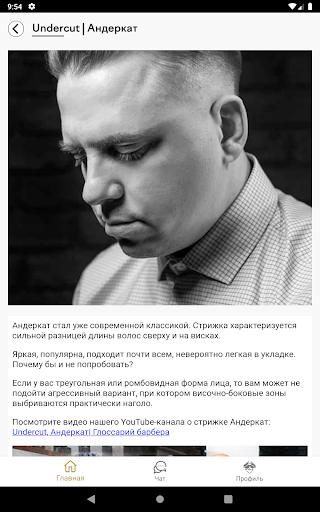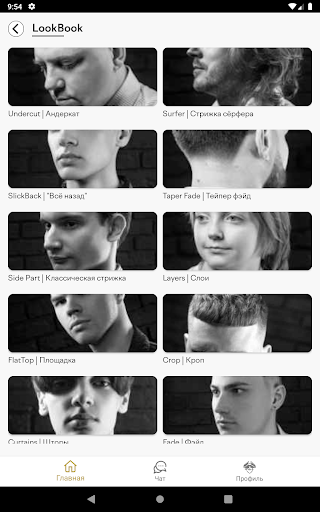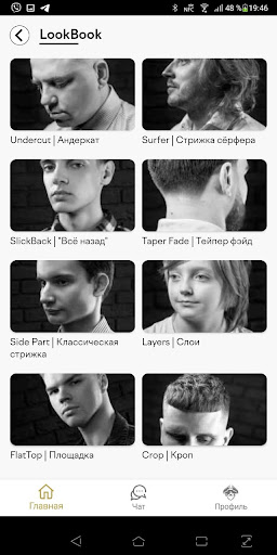 – Лукбук – в этом разделе вы сможете выбрать интересную стрижку, посмотреть, что сейчас актуально в мире мужского стиля.