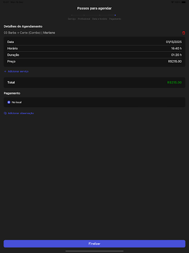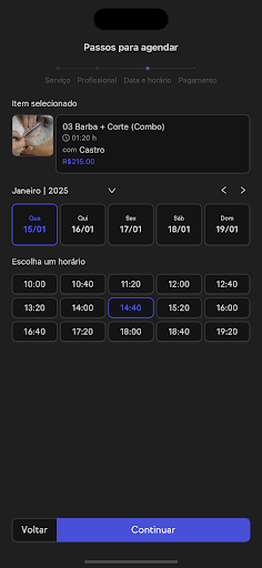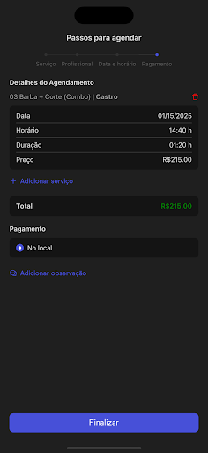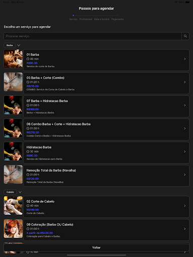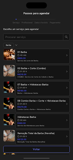 Nosso App permite que você agende serviços de excelência, como: barbeiro, cabeleireiro, manicure e pedicure. Depilação com cera ou maquina, com a disponibilidade dos nossos profissionais, com praticidade para você!
