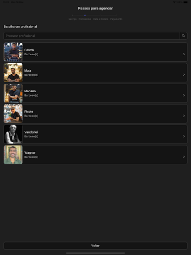 – Selecione o profissional que irá atendê-lo;