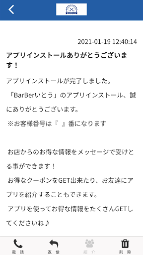 BarBerいとうのアプリをSNSを通じてお友達に紹介する事ができます。