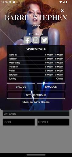 The Barrie Stephen Hair Salons booking app allows clients to log on and make bookings online under their own profile 24/7. Clients can track loyalty points as well as looking at historic and future bookings and get directions for their favourite salon.