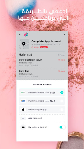 Beaute App is providing convenient online payments to the customers, including Mada, and apple pay. Our support team is looking to serve you all the time of day. In addition, the rating and pictures of the Salons and home services are available, which can help you to select.