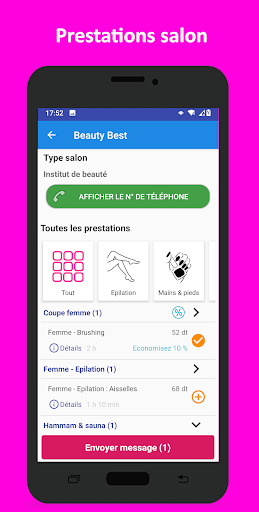 BeautyZayn : la meilleure façon de réserver des soins beauté en ligne en Tunisie. Trouvez des salons de beauté près de chez vous, lisez les avis et réservez sur l’application. Peu importe le type de soin de beauté que vous cherchez : épilation, manucure, pédicure, coiffure, soin du visage, massage ou soin du corps vous trouverez votre bonheur sur l’application.
