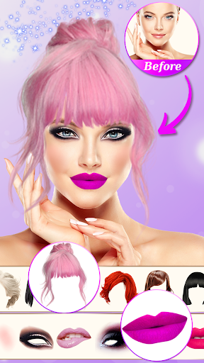 With this free makeup app for girls, you can create multicolored pictures and get hotpepper beauty! You will surely get addicted to this photo modifier creating the most adorable photo albums! It is easy to become a miss perfect in a sec by perfect beauty salon with perfect hair makeup and makeup styles. Get started now and refresh your old pictures with this awesome beauty editor. Enjoy your beautiness!