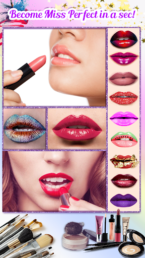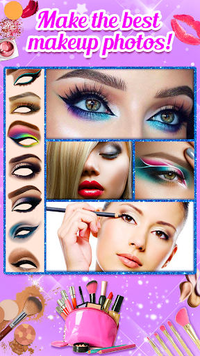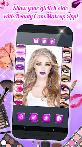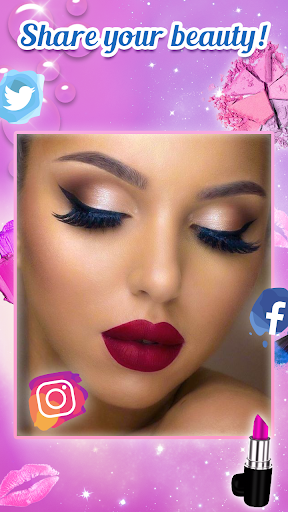 This Beauty Cam Makeup Photo Editor is the best makeover makeup photo studio with mascara and eye colors, shadows for your eyes and lipstick for your lips for your beautiful face. Create your best makeover in real-time or on your photos.