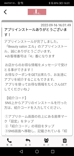 BeautysalonLのアプリをSNSを通じてお友達に紹介する事ができます。