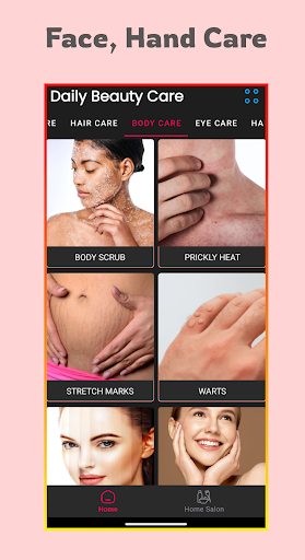 In this application you can find remedies for you’re the following problems of hair, face, skin, eyes, hands, and feet :