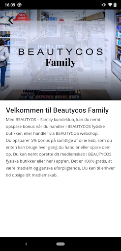 Du opsparer 5% bonus på samtlige af dine køb, som du enten kan bruge hver gang du handler eller spare dem op. Du kan nemt oprette dit medlemskab i BEAUTYCOS fysiske butikker eller her i app’en. Det er 100% gratis, at være medlem og ganske uforpligtende. Du kan til enhver tid opsige dit medlemskab.