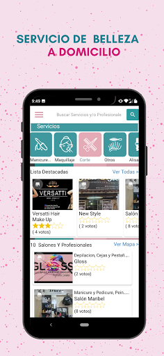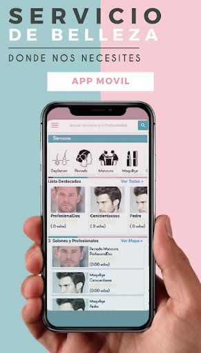 La app es muy sencilla, solo necesitas elegir el servicio que deseas y tendrás frente a la puerta de tu casa a un profesional calificado en corte, peinado, maquillaje, manicure, pedicure, depilación y mas.