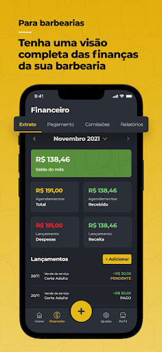 A Barbearia possui uma versão gratuita, podendo realizar agendamentos à vontade, sem limitação alguma. Para a barbearia que deseja ser premium, o controle financeiro, de comissões e relatórios também é disponibilidado no aplicativo, além de um link unico personalizado, para que a barbearia possa enviar para o seu cliente, podendo fazer um agendamento ainda mais prático.