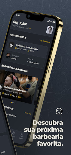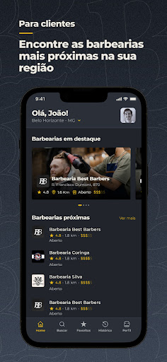 Os clientes conseguem encontrar barbearias próximas ou também pesquisar pelo nome da mesma. O perfil da barbearia no app está presente para que o cliente consiga visualizar o espaço do estabelecimento e também fotos dos e valores serviços, além do horários de funcionamento.