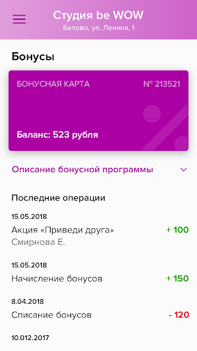 – Личный кабинет с историей всех предыдущих и будущих визитов, а также любимых услуг