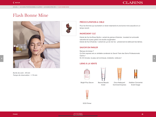 Un mémo indispensable pour accompagner nos Expertes en Soins cabine et pour nos Beauty Coach, une mine d’or pour mieux conseiller nos Clientes sur les Soins Professionnels Clarins et leur faire vivre une expérience sur-mesure.