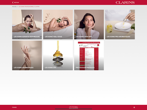 Mais aussi…les protocoles produits et toute la gamme ClarinsPRO, facilement téléchargeables pour les retrouver rapidement, selon vos besoins !