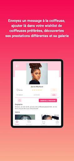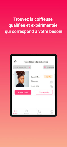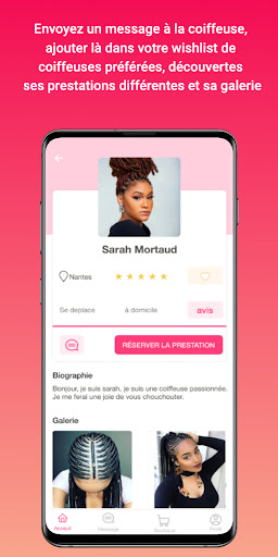 Le but principale de cette application est la mise en relation d’une coiffeuse et d’une cliente pour les coiffures afro.