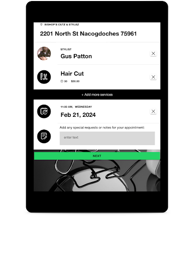 Welcome to Bishop’s Cutz & Stylez, your go-to solution for hassle-free barber appointments! Discover a seamless booking experience that puts you in control. Explore a range of services, check prices and durations, and effortlessly navigate through the schedule. Find the perfect time slot that suits you, ensuring a personalized grooming experience tailored to your schedule. Whether it’s a stylish haircut, a precise beard trim, or other grooming services, you’ll find the right fit for your preferences.