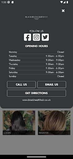 The Blackheath Hair & Co booking app allows clients to log on and make bookings online under their own profile 24/7. Clients can track loyalty points as well as look at historic and future bookings and get directions for their favourite salon.