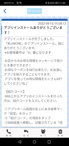 BLANCHEのアプリをSNSを通じてお友達に紹介する事ができます。