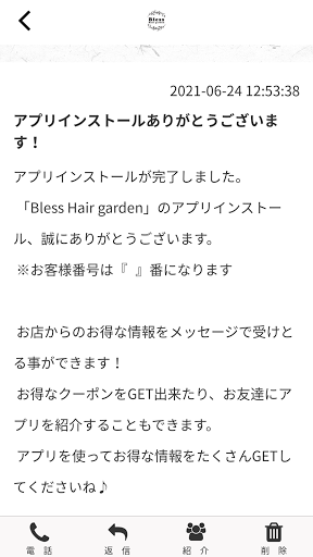 Bless HairのアプリをSNSを通じてお友達に紹介する事ができます。