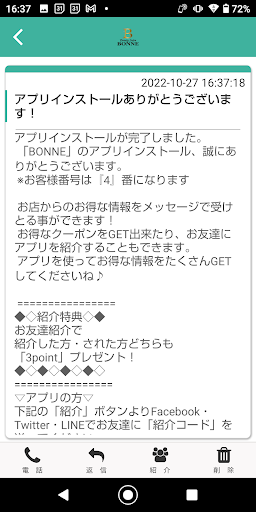 BONNEのアプリをSNSを通じてお友達に紹介する事ができます。