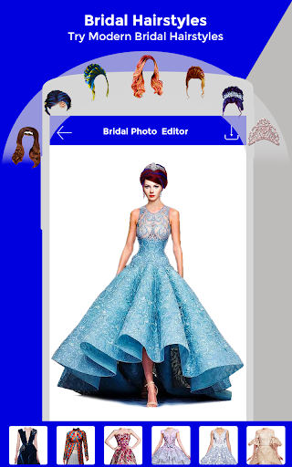 Bride photo editor for wedding bridal hairstyles allows you to change Hairstyle or attempt new haircut on photograph. Make photograph with the Wedding Hairstyle for bride and make your ideal wedding look with delightful Wedding Hairstyle.It is a Very simple Dulhan pic app where we give you step by step procedure to change bridal hairstyle.