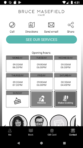 The Bruce Masefield booking app allows clients to log on and make bookings online under their own profile 24/7. Clients can track loyalty points as well as looking at historic and future bookings and get directions for their favourite salon.