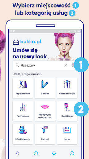 Dzięki bukka.pl błyskawicznie zarezerwujesz wizytę w najlepszych salonach w Twoim mieście. W aplikacji znajdziesz salony fryzjerskie, gabinety kosmetyczne, masażu, SPA i nie tylko.