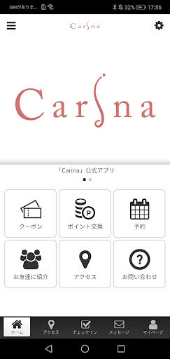 このアプリでは、Carinaの最新情報の受け取りや便利な機能を使う事ができます。