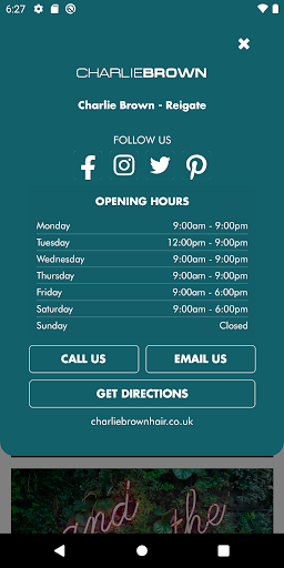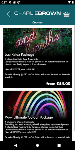 The Charlie Brown Salons booking app allows clients to log on and make bookings online under their own profile 24/7. Clients can track loyalty points as well as looking at historic and future bookings and get directions for their favourite salons.