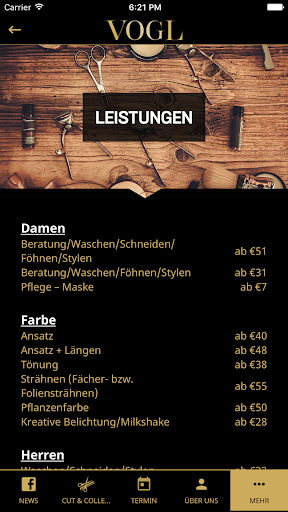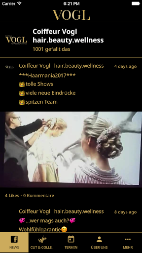 Die Coiffeur Vogl-App ist eine praktische App für alle Kunden/innen und für diejenigen, die es noch werden möchten. Ihr Termin ist somit immer nur einen Klick entfernt. Sie finden Infos wie Öffnungszeiten, Adresse und Telefonnummer in der App und sind immer am neuesten Stand. Es warten außerdem tolle Aktionen, Goodies und Gewinnspiele auf Sie.