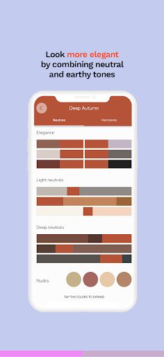 With ColorApp, you can combine colors in just a few steps. Whether you’re putting together your daily outfits or decorating your home, it’s all super easy with our Harmony and Neutrals tools. Just take a photo, search your gallery, or click on the digital palettes to find the perfect color suggestions.