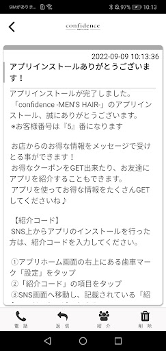 confidenceのアプリをSNSを通じてお友達に紹介する事ができます。