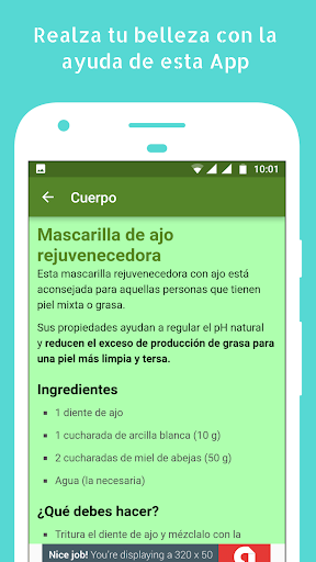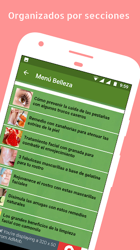 Una gran cantidad de contenido con recetas caseras fáciles sobre belleza para preparar en el hogar. Te ayudará ahorrar dinero donde te permite por ti misma realizar las preparaciones indicadas en nuestra App donde te guiaremos paso a paso la realización con éxito de cada uno de los artículos.