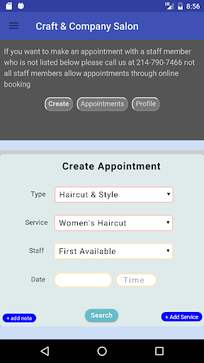 Download the Craft & Company Salon App today to schedule your appointments! From this mobile app, you can view services and staff information, book appointments as well as view the salon’s location and contact information. You can also click through our image gallery. Optimize your time and maximize your convenience by booking online from your device anytime, anywhere.