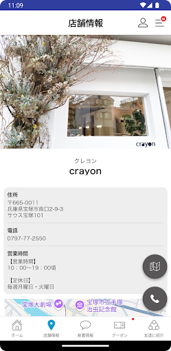 店舗のマップが表示され、地図アプリとも連携しているので、初めてのご来店の時も簡単に見つけることができます。
