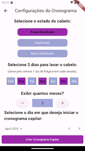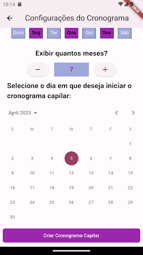 4º Selecione o dia em que deseja iniciar o cronograma capilar.