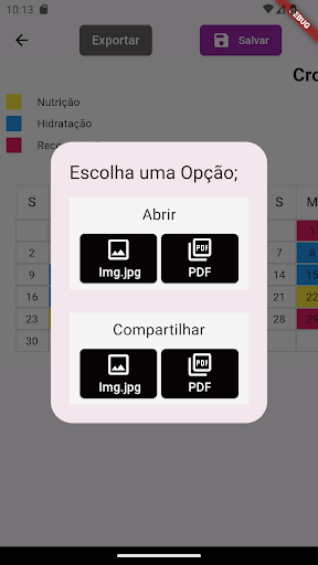 Aplicativo para profissionais da área da beleza criarem cronogramas capilares para suas clientes, com possibilidade de compartilhar o cronograma em formato de imagem ou pdf.