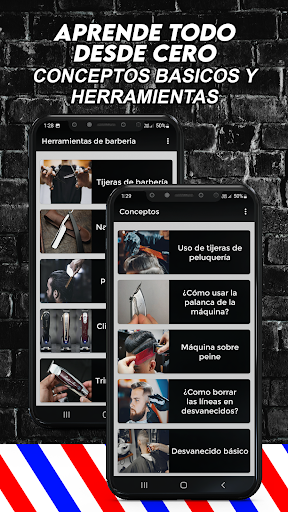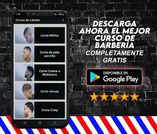 🔵⚪🔴 ¿Te gustaría aprender a ser barbero? 🔵⚪🔴 ¿Te interesan los cortes de cabello para hombre que están a la moda? ¿Quieres emprender tu propio negocio de barbería o aprender una nueva habilidad para encontrar un empleo como barbero? Entonces esta aplicación sin duda es la indicada, te va a gustar y será útil para ti; en esta aplicación encontraras el mejor y mas completo curso de barbería profesional; en donde aprenderás todo lo que necesitas para abrir tu propio salón de barbería o peluquería masculina, encontraras fotos de peinados y cortes masculinos con las mejores tendencias, imagenes en alta calidad de cortes de cabello para hombre y niños, consejos de barbería y tips para que tu negocio sea reconocido y mucho mas.
