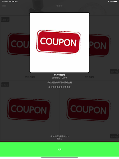 – 換取限時優惠券以優惠價購物或紋繡服務