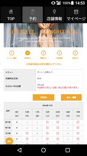 指名予約にも対応しているので担当スタッフのスケジュールを確認してからの予約が可能です。