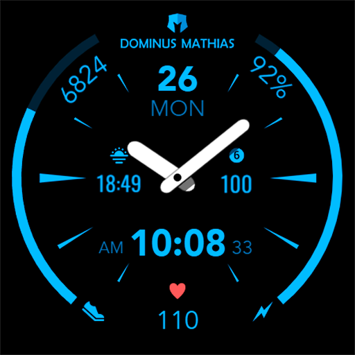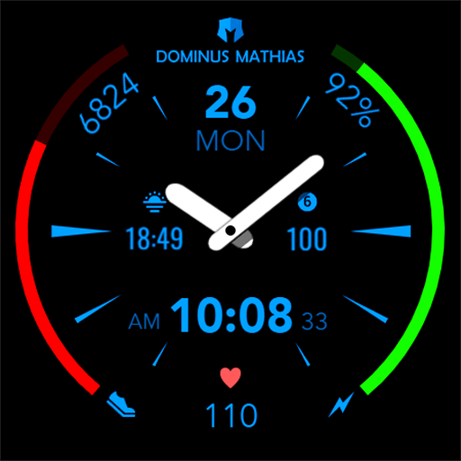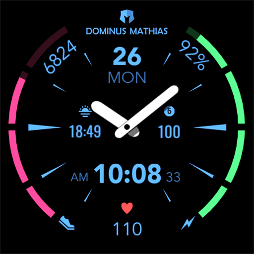 Unique, original watch face from Dominus Mathias for Wear OS devices. Enjoy the real power of this premium model. It contains all the most relevant complications / information as a analog & digital time (hours, minutes, seconds, am/pm indicator), date (weekday, day in month), health, sports & fitness data (steps, heart rate), customizable complications. You can choose from many color combinations to enjoy your sports activities.
