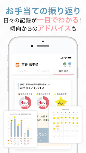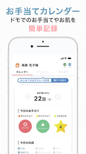お手当てカレンダーでは、毎日のお肌やお手当てを楽しく記録し、振り返ることもできます♪