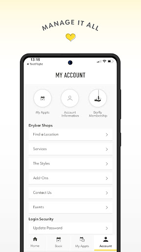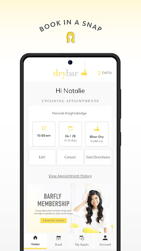 At Drybar, our philosophy is simple. Focus on one thing and be the best at it. For us, that’s blow-dries. With that purpose in mind, we are focused on giving each and every client the premier blow-dry experience while providing professional quality products and tools to better help clients achieve and maintain the perfect blowout at home. Easily book a blow-dry appointment for you and all your friends. View, edit, or cancel your upcoming appointments on your personal home screen and seamlessly rebook your favourite service & location with just a few taps. You can find a Drybar location while on the go and become a Barfly with our Signature or Premium Memberships to ensure your hair is perfect on your most important dates throughout the month.