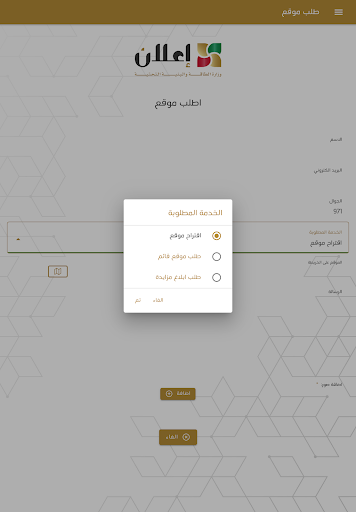 يمكن هذا التطبيق المتعاملين مع إدارة الاستدامة المالية والاستثمار في وزارة الطاقة والبنية التحتية من تقديم جميع أنواع الطلبات الخاصة باستثمارات المواقع إعلانياً لمكتب الإعلانات الخارجية بطريقة آمنة وذكية ، تشمل المعاملات الخاصة بالتطبيق طلب الموقع , والاستفسار، والحجز ، والتقديم على المزايدات وغيرها ، كما يمكن للمتعاملين علن طريق التطبيق تقديم الملاحظات والشكاوى والمقترحات للإدارة.