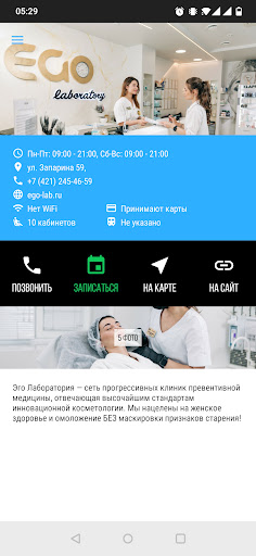 EGO laboratory с Вами на всем жизненном пути: от анализов, диагностики и первой шлифовки кожи до реабилитации и поддержания результата. От коррекции внешних признаков старения до глубокого внутреннего лечения. Нам доверяют свыше 25000 пациентов со всего Дальнего Востока! Современные интерьеры площадью свыше 1200 м2 и высокий уровень заботы о пациентах делают Ваше пребывание в клинике комфортным.