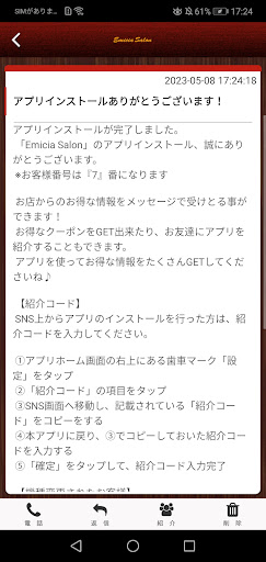 Emicia SalonのアプリをSNSを通じてお友達に紹介する事ができます。