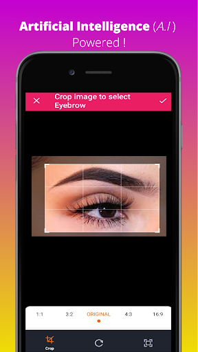 ๐Ÿ“ท Image Crop and Analysis: Take or choose a photo from your gallery, carefully crop your eyebrows within the app, and let our advanced AI technology take over. Our algorithms will meticulously analyze the image to accurately determine your eyebrow type.